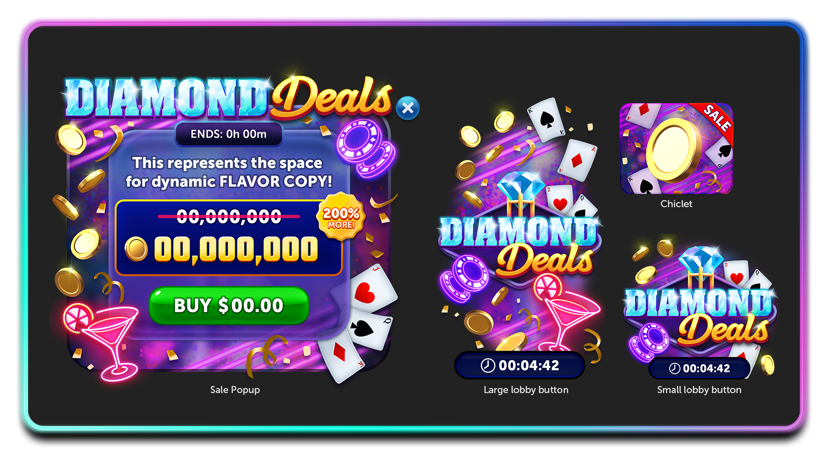Took branded slot game collateral and created prototype sales for our future liveops team to utilize. These would serve as templates and examples for future slot game branded sales.