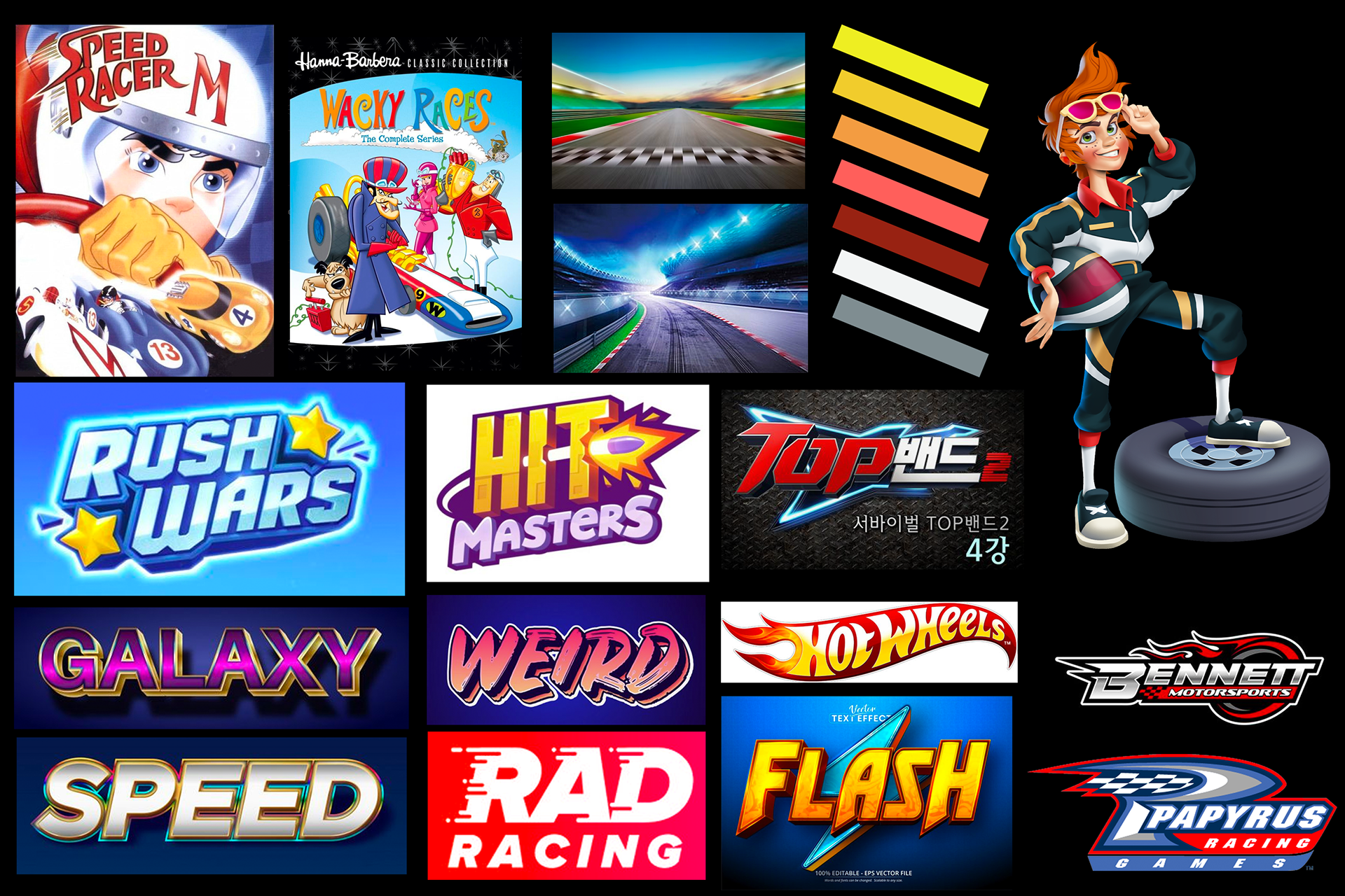 Madcap Dash was inspired by old TV shows like "Wacky Races" and featured weird and silly car designs. I was responsible for logo and brand creation, as well as several collaged assets using art created by our illustrators.